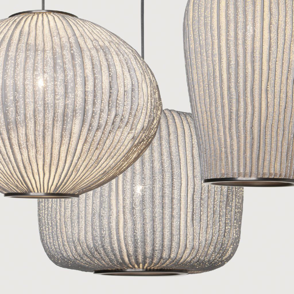 Svítidla jsou ručně vyráběna v dílnách A-emotional na severu Španělska ze speciálně perforovaného nerezového plechu. Bílá povrchová úprava. Materiál dodává svítidlu jedinečnost.