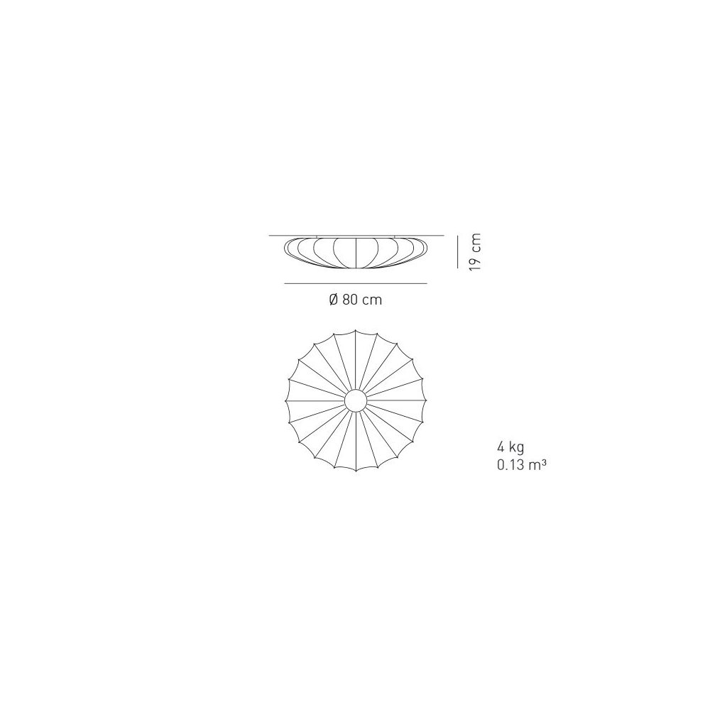 Průměr: 80cm, výška 19cm. 3 světelné zdroje o maximálním výkonu 3x70W s paticí E27 s možností použití LEDky, úsporky nebo halogenu.