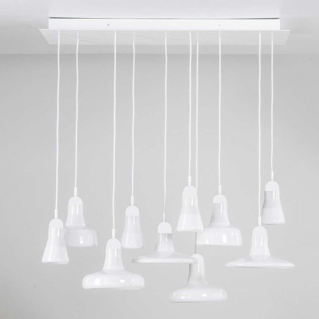 Brokis Shadows set rectangular large, závěsné svítidlo, foukané matné bílé sklo - bílý dub - černý kabel, 10x5W LED GU10 dim, 100x36cm