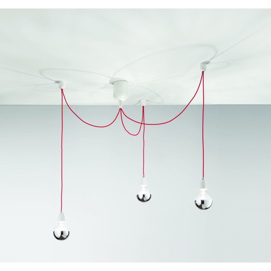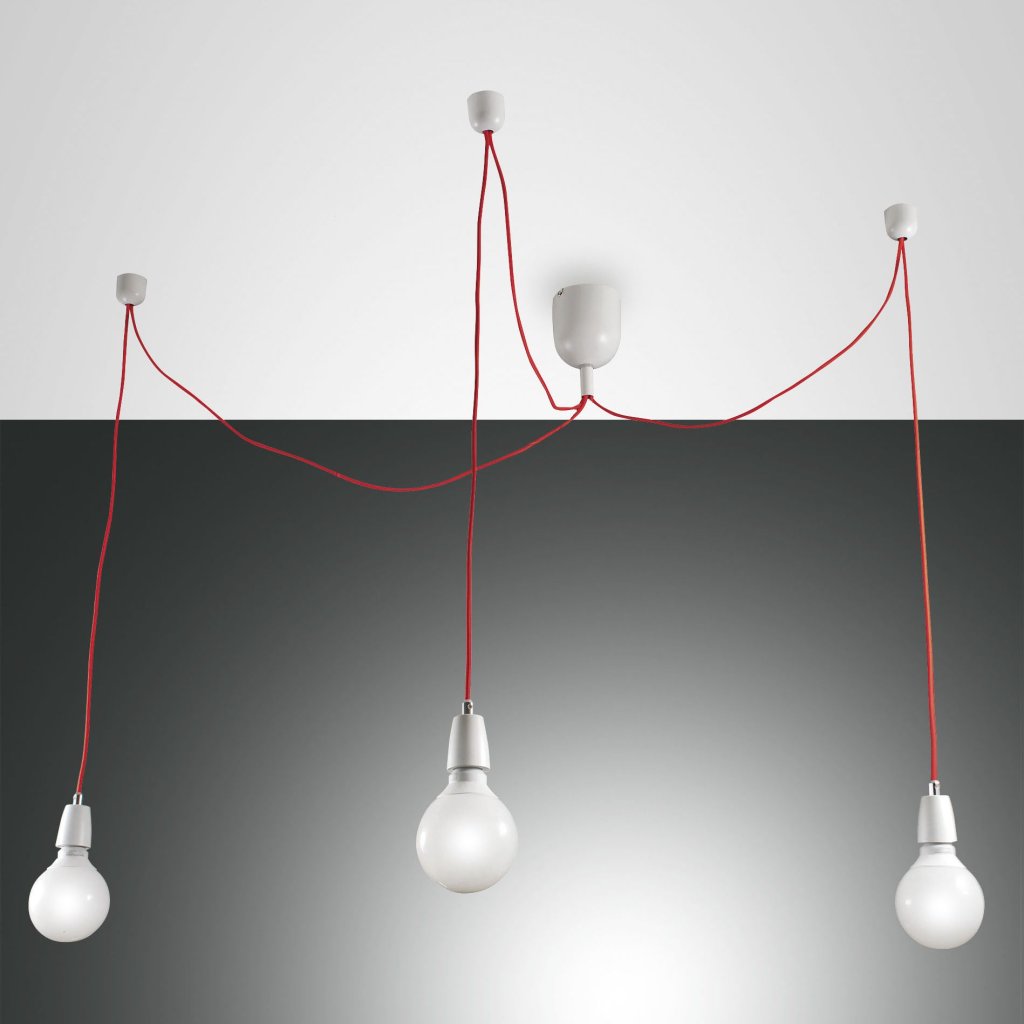 Fabas Blog, bílé závěsné objímky na červených kabelech, 3x60W E27, délka 400cm