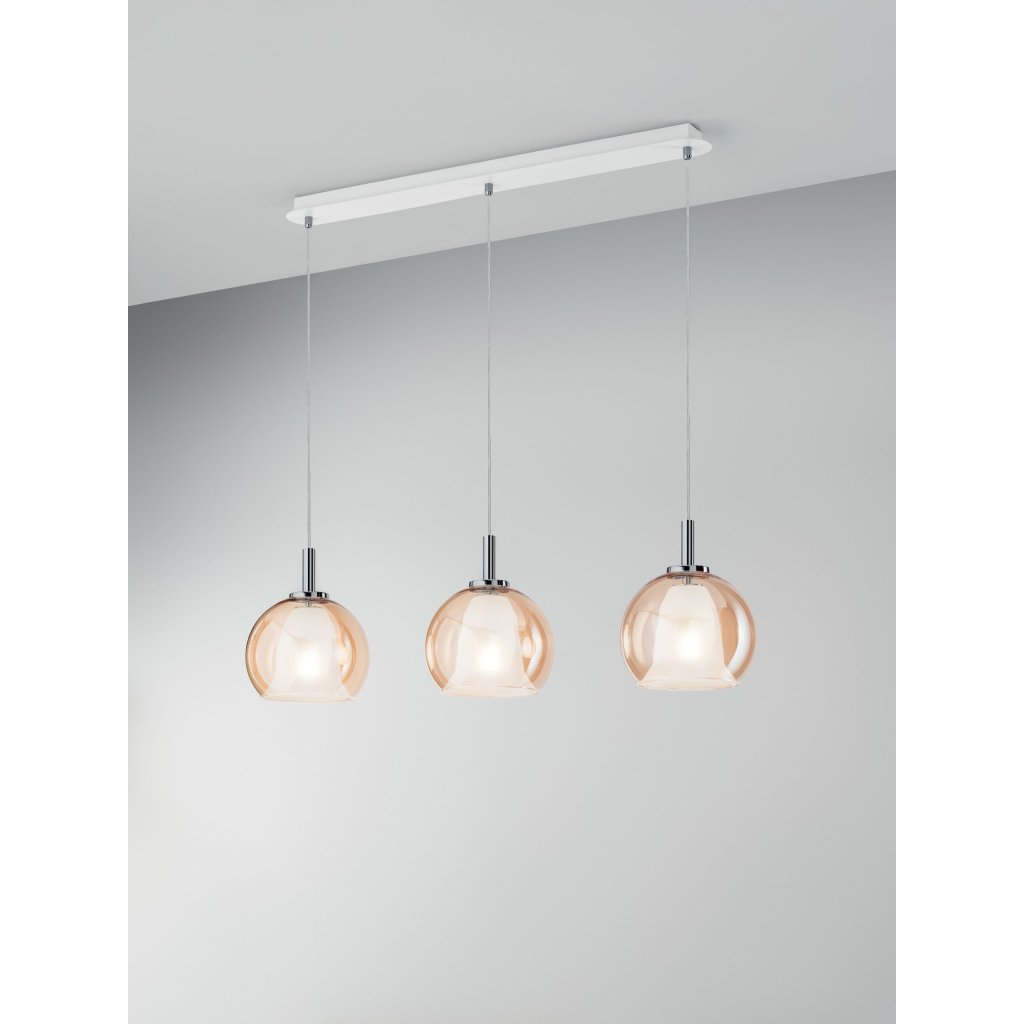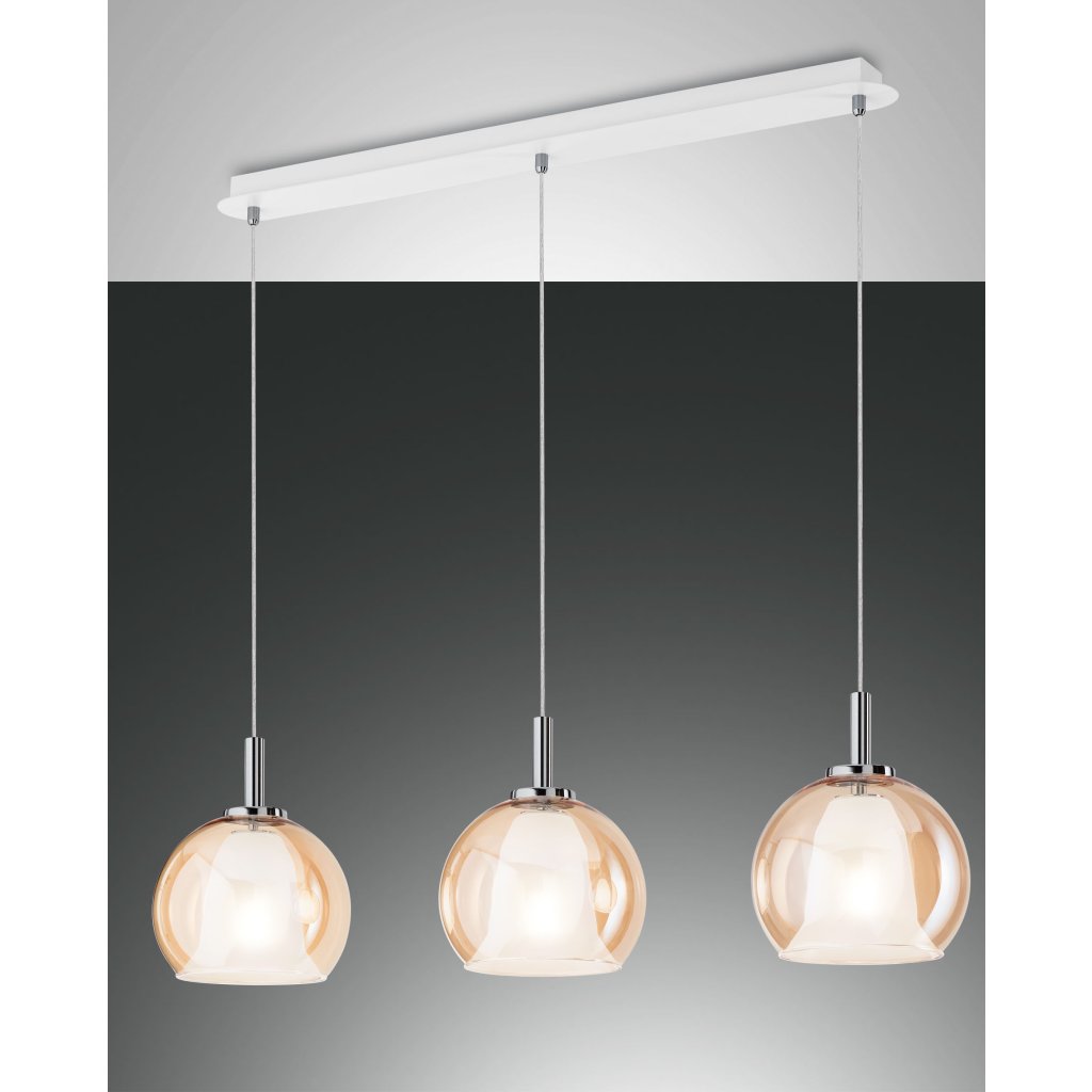 Fabas Bretagna, závěsné svítidlo na liště z ambrového skla, 3x40W E27, délka 83cm