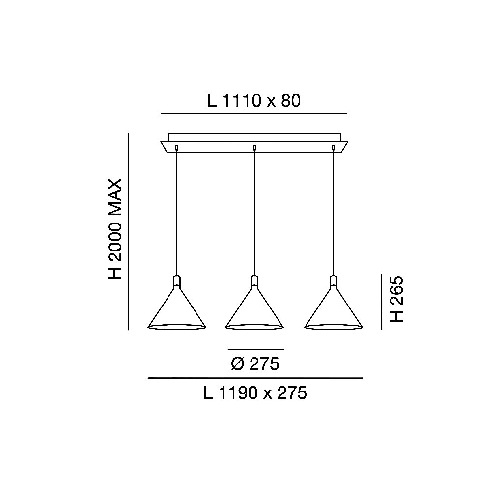 Průměr skla 27,5cm, výška skla je 26,5cm. Délka černé stropní lišty je 111cm. Délka závěsu je 200cm a při montáži je možné ho zkrátit.