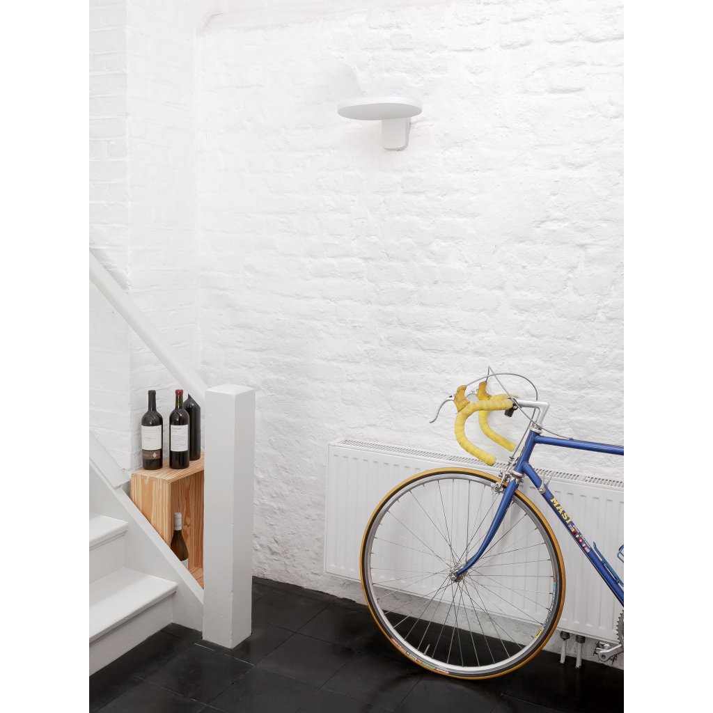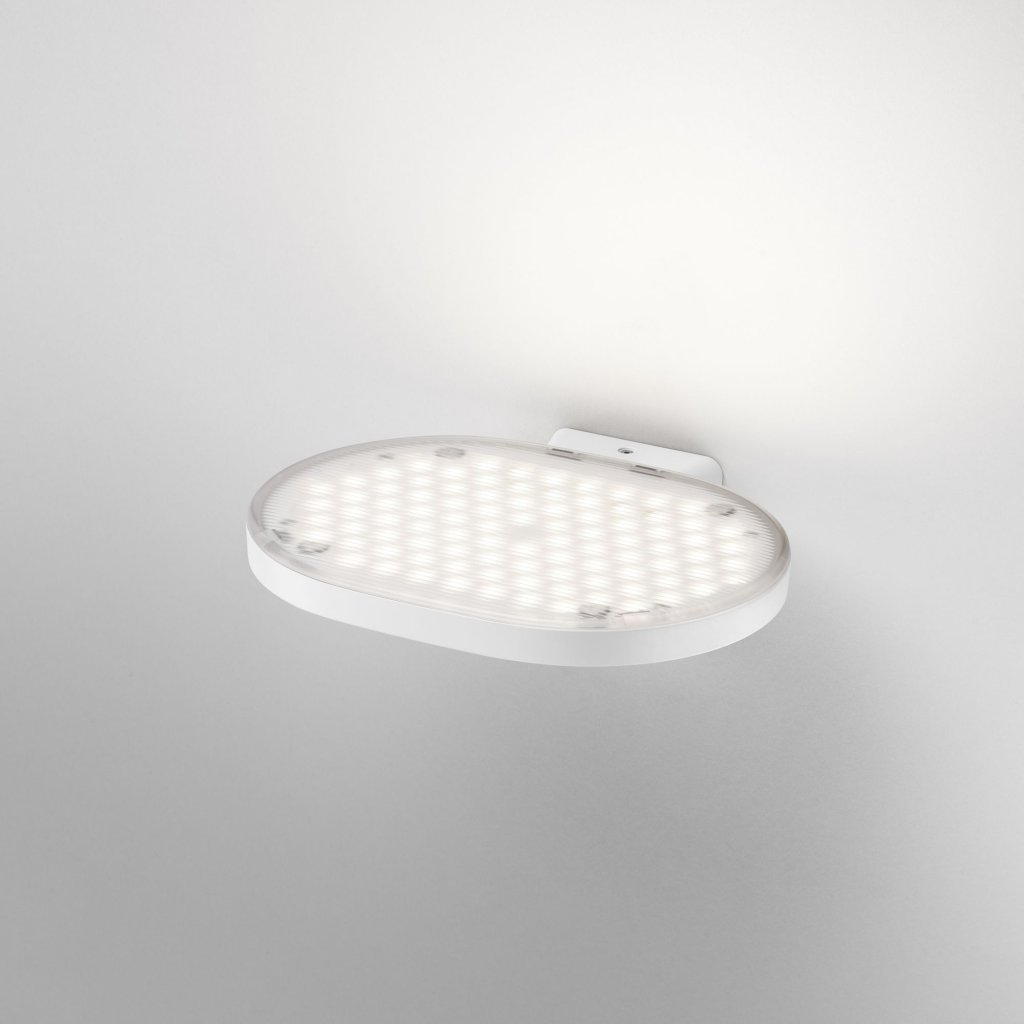 Flos Oplight W1: nástěnné svítidlo pro nepřímé osvětlení se silným světlem s teple bílou barvou světla a vysokým podáním barev. Autor designu: Jasper Morrison, 2021, vyrábí italský výrobce Flos. Designem poskytuje vyvážený poměr mezi technickými a designovými svítidly pro domácí použití.