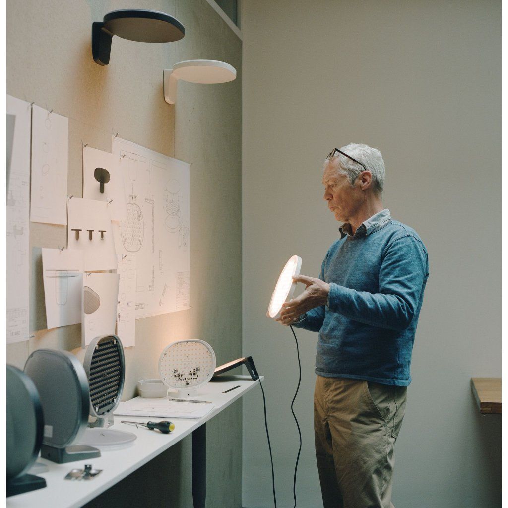 Flos Oplight W2: nástěnné svítidlo pro nepřímé osvětlení se silným světlem s teple bílou barvou světla a vysokým podáním barev. Autor designu: Jasper Morrison, 2021, vyrábí italský výrobce Flos. Designem poskytuje vyvážený poměr mezi technickými a designovými svítidly pro domácí použití.