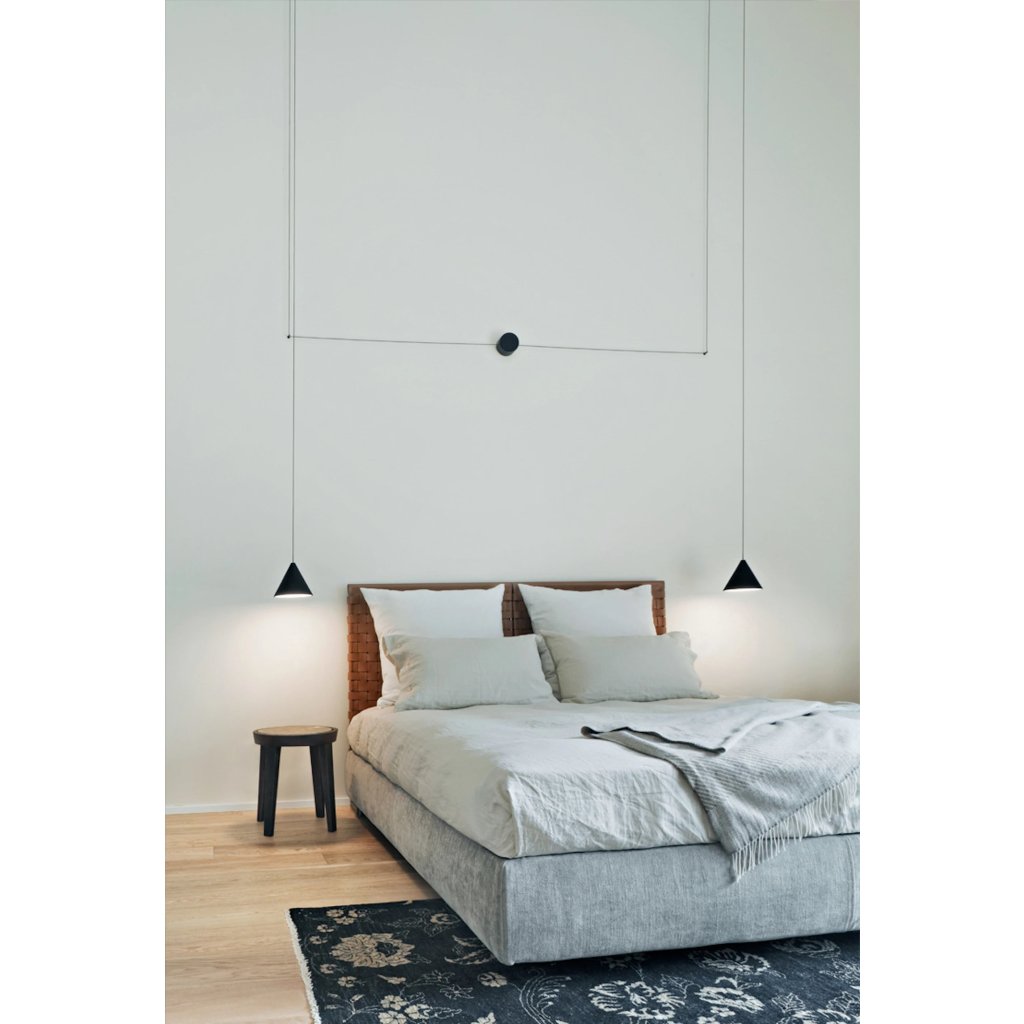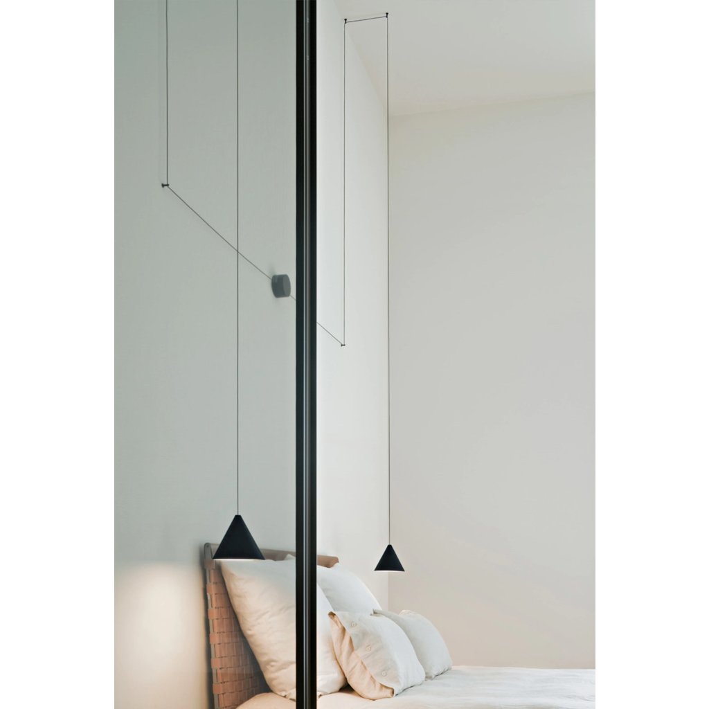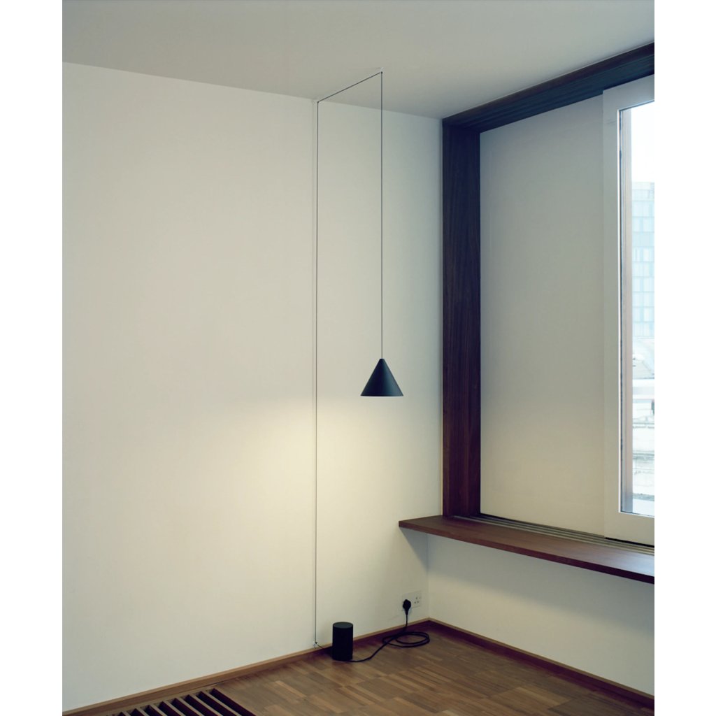 Flos String Light Cone head, svítidlo s 12m dlouhým kabelem, 21W LED 2700K, dotykové ovládání + bluetooth, černá, prům. 19cm