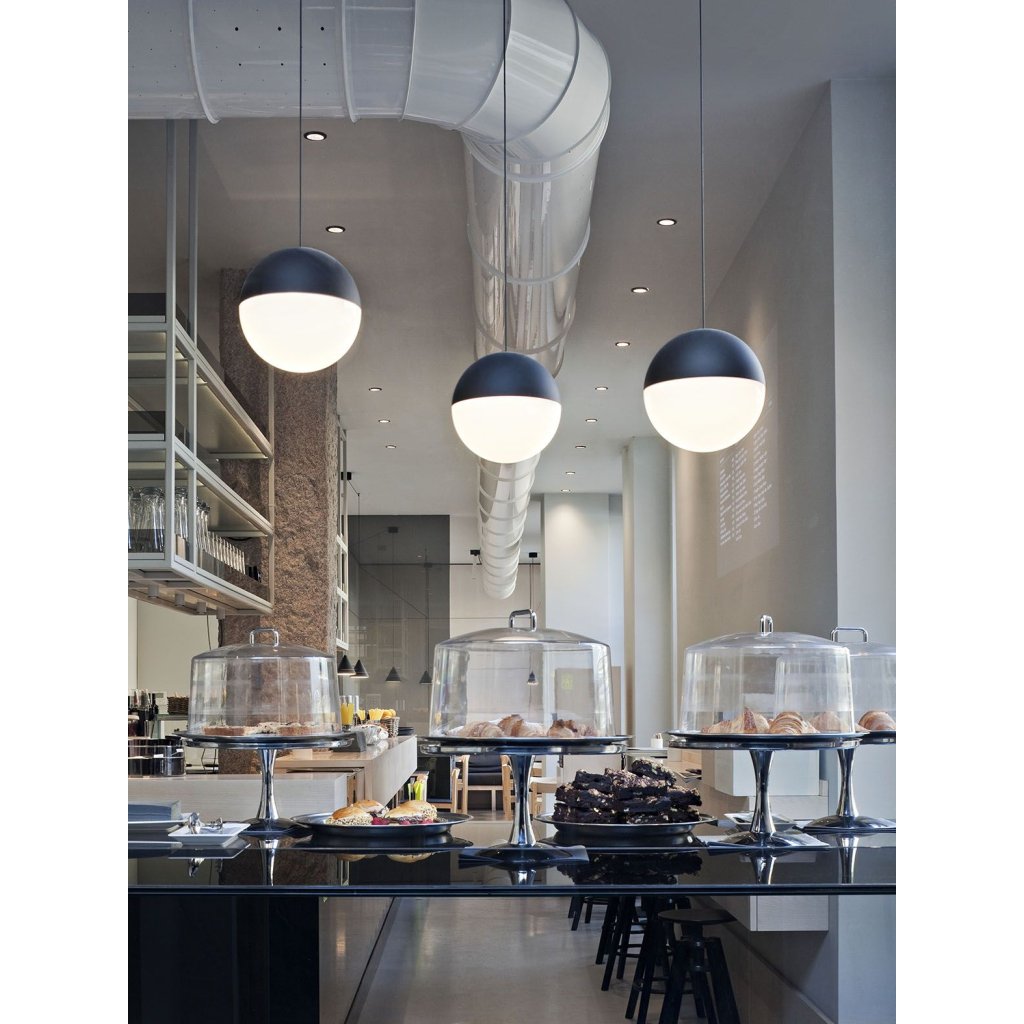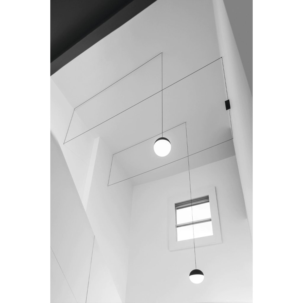Závěsné svítidlo, které je ovládané dotykem nebo aplikací pro iOS nebo Android s 22m dlouhý modrým, kevlarovým kabelem, který je určen pro variabilní natažení přes stěny a stop pro vytvoření specifického plastického efektu. Vyrábí firma Flos, autor designu a konceptu String light: Michael Anastassiades, 2014.