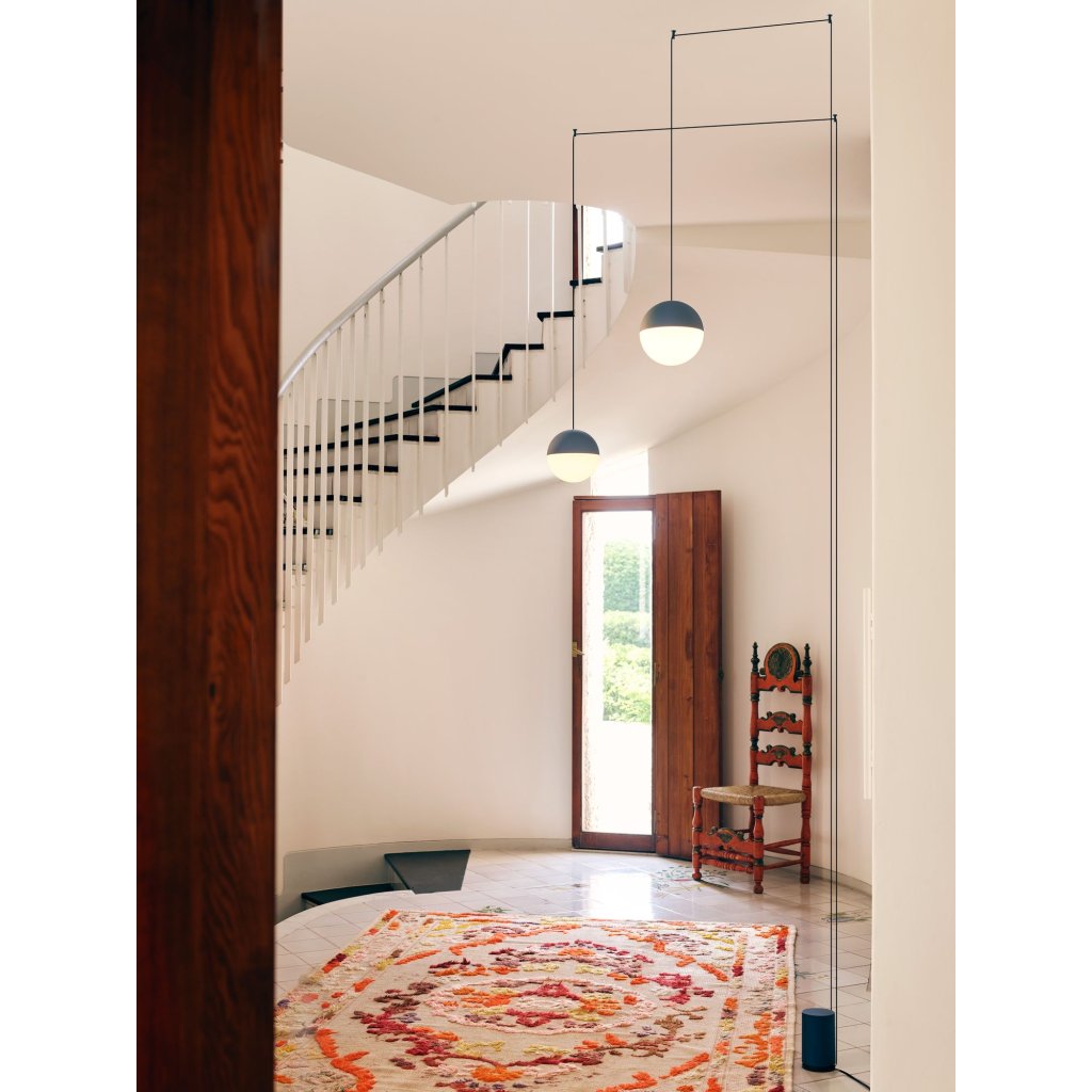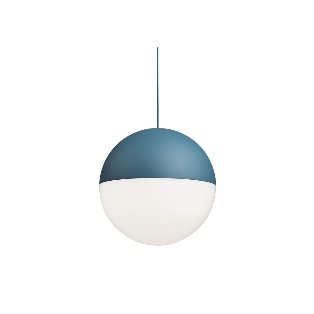 Flos String Light Sphere head, svítidlo s 22m dlouhým kabelem, 21W LED 2700K, dotykové ovládání + bluetooth, modrá, prům. 19cm