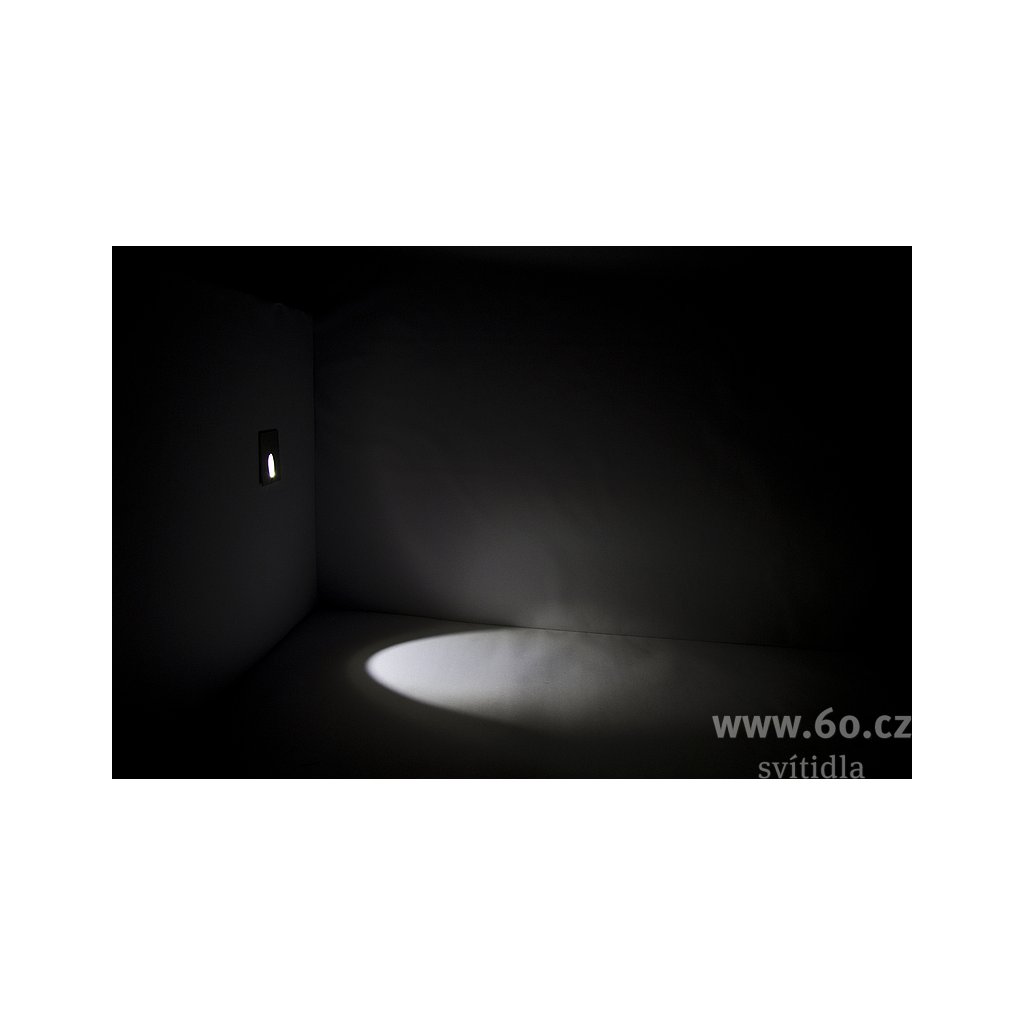 Osazeno 2W LED se světelným tokem 109lm. Teple bílá barva světla 2700K, index podání barev 80.