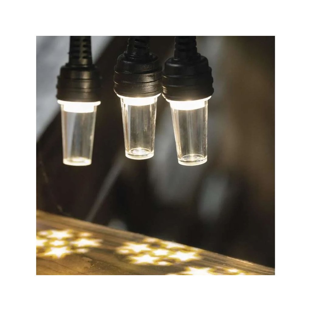 Venkovní světelný řetěz s párty kužely svítícími teplou bílou barvou doladí útulnou atmosféru při posezení na balkoně, terase, venkovních oslavách, svatbách, kulturních akcích a také jako vánoční osvětlení. Při správně zvoleném počtu řetězů dokáže asistovat tradičnímu osvětlení a udělá tak každý den výjimečným. Stále častěji je tento typ řetězu využíván jako stylové osvětlení na zahrádkách či v interiérech restaurací, kde vkusně ozdobí i jinak obyčejný prostor. Díky dlouhému napájecímu kabelu o délce 5 m je jeho zapojení do elektrické sítě hračkou.