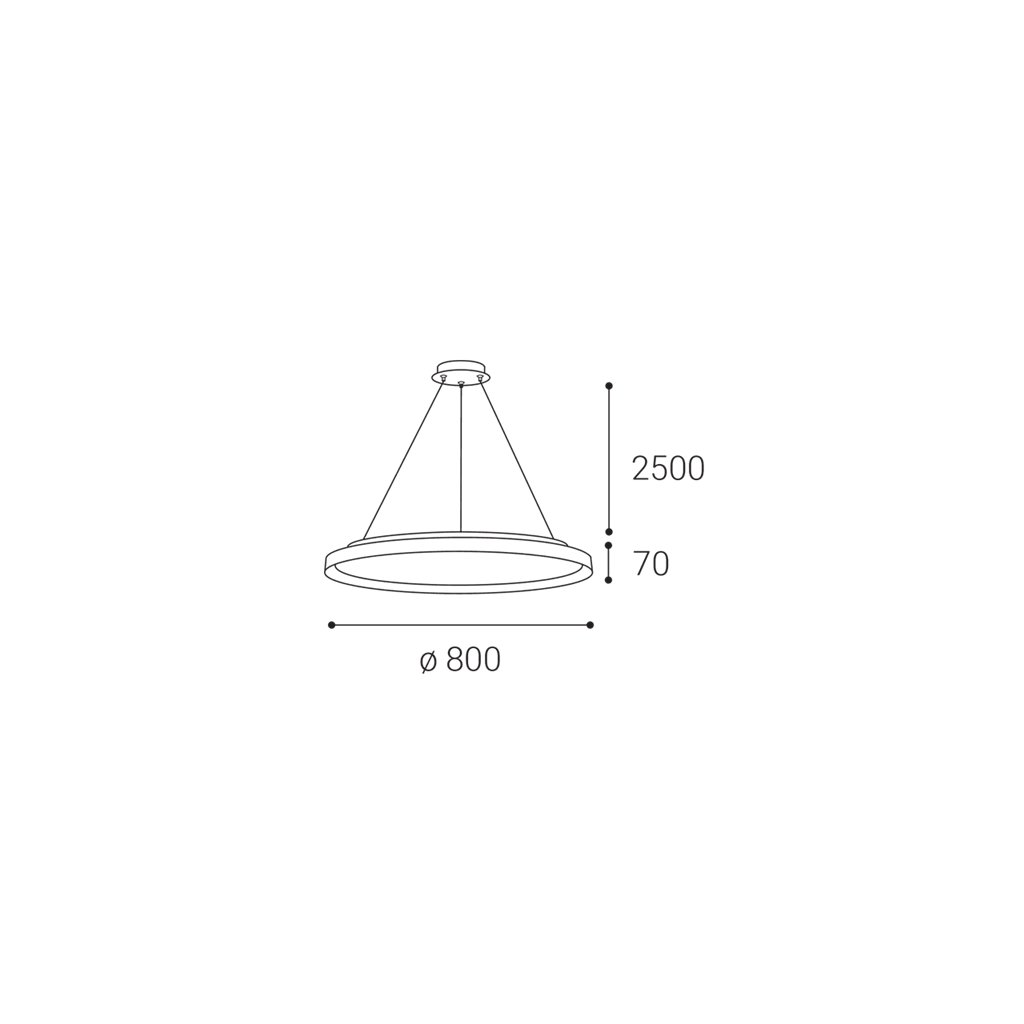 Průměr světla 80cm, výška 7cm. Délka závěsu je max. 250cm, možnost zkrácení při montáži.