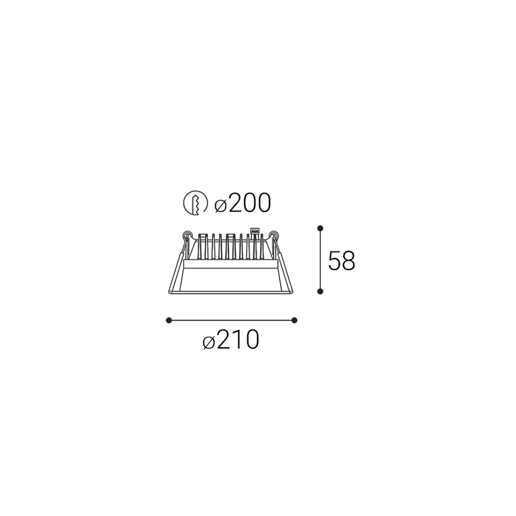 Průměr: 21cm, hloubka: 5,8cm. Montážní otvor: 20cm. Svítidlo má pérka pro uchycení do montážního otvoru.
