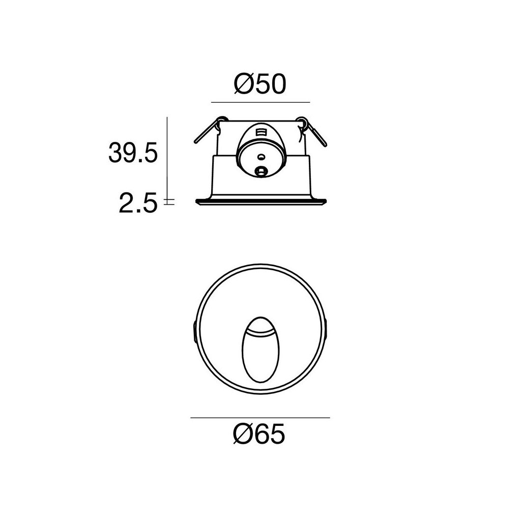 Průměr 6,5cm, hloubka 3,9cm. Montážní otvor průměr 5cm.
