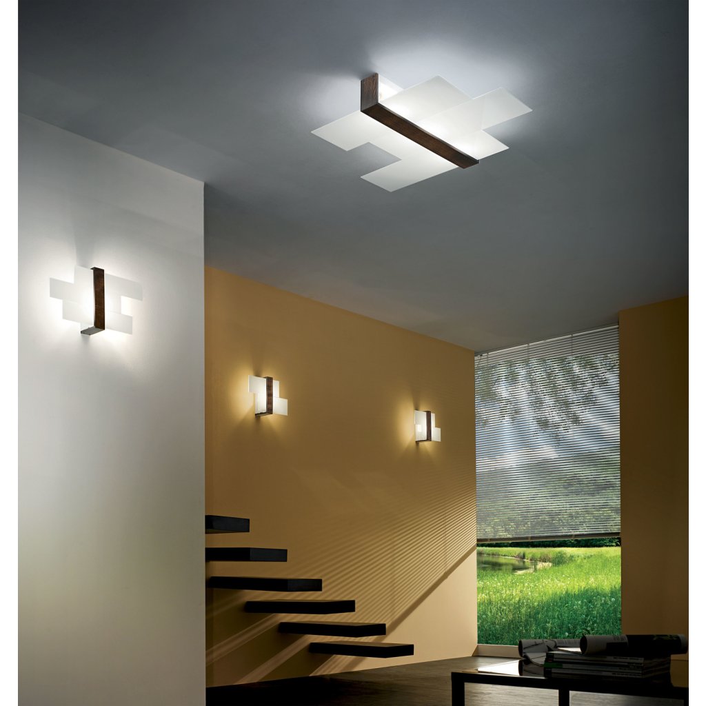 Lampy lze použít jako stropní nebo nástěnné osvětlení, čímž umožňují různé variace a hru s designem místnosti. Jejich precizní provedení a kvalitní materiály, jako je lesklý bílý lakovaný kov nebo ořechové dřevo, dodávají lampám luxusní a sofistikovaný vzhled.