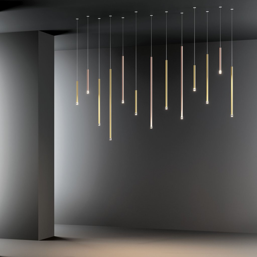 Subtilní, minimalistické závěsné svítidlo pro samostatné použití nebo vytváření svítidel z více závěsů. Vyrábí italský výrobce Lodes, série A-tube nano.