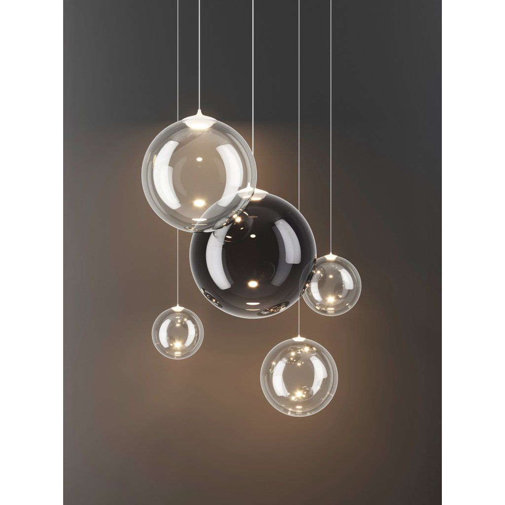 Lodes Random Solo 10: nadčasový tvar kuličky na černém závěsu s možností kombinace s jinými průměry a různými barvami v rámci jednoho sestaveného svítidla. Autor designu: Chia-Ying Lee, 2020. Vyrábí Lodes, made in Italy.