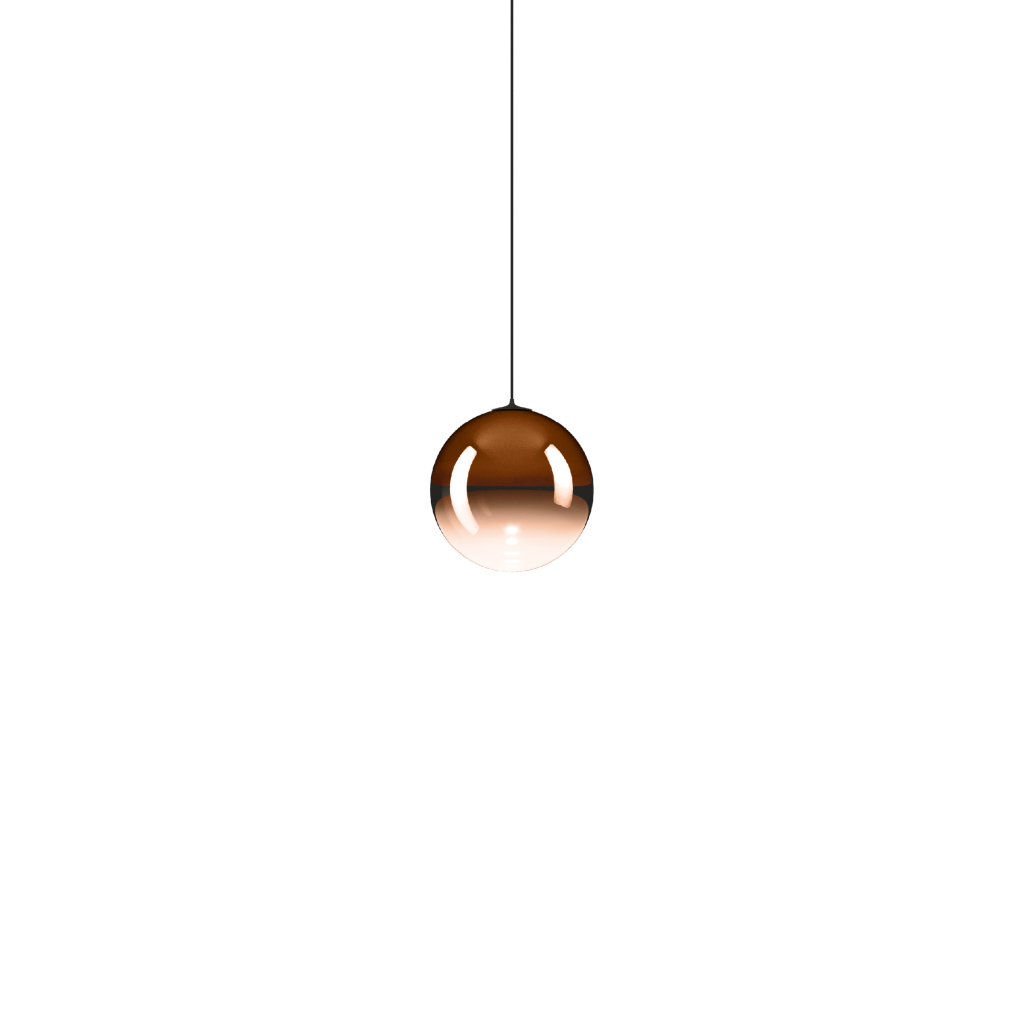 Vyrobeno ručním foukáním z mandarinkově oranžového (mandarin orange). Do skla je sofistikovaným způsobem zapracován LED zdroj světla. Průměr kuličky je 10cm, délka závěsu 400cm s možností zkrácení.