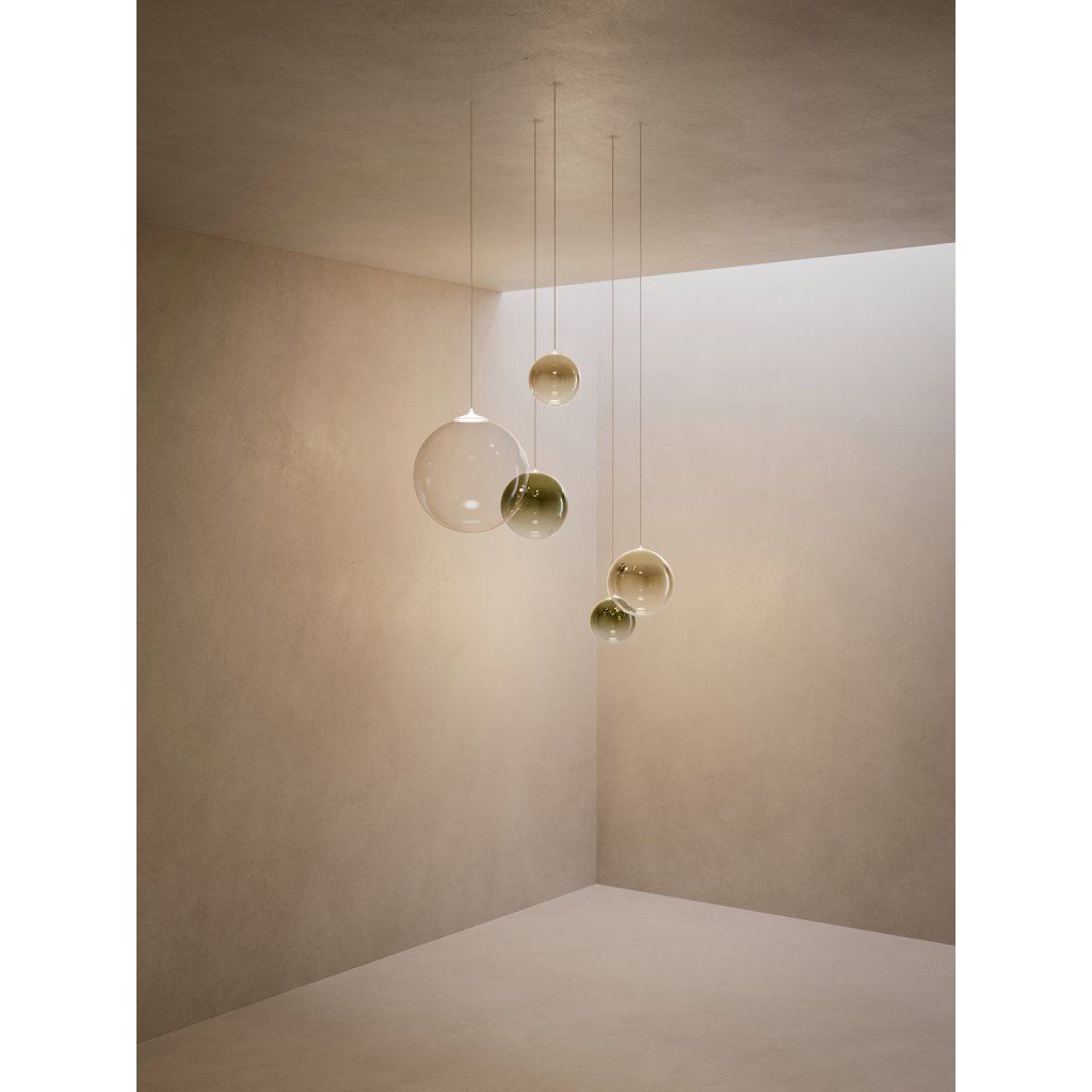 Lodes Random Solo 12: nadčasový tvar kuličky na závěsu s možností kombinace s jinými průměry a různými barvami v rámci jednoho sestaveného svítidla. Autor designu: Chia-Ying Lee, 2020. Vyrábí Lodes, made in Italy.