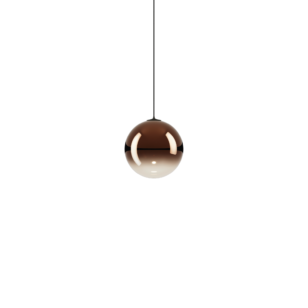Vyrobeno ručním foukáním z bronzového skla (glossy bronze). Do skla je sofistikovaným způsobem zapracován LED zdroj světla na černém kabelu. Průměr kuličky je 12cm, délka závěsu 400cm s možností zkrácení.