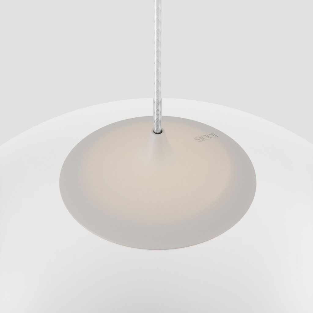 Lodes Random Solo 12: nadčasový tvar kuličky na závěsu s možností kombinace s jinými průměry a různými barvami v rámci jednoho sestaveného svítidla. Autor designu: Chia-Ying Lee, 2020. Vyrábí Lodes, made in Italy.