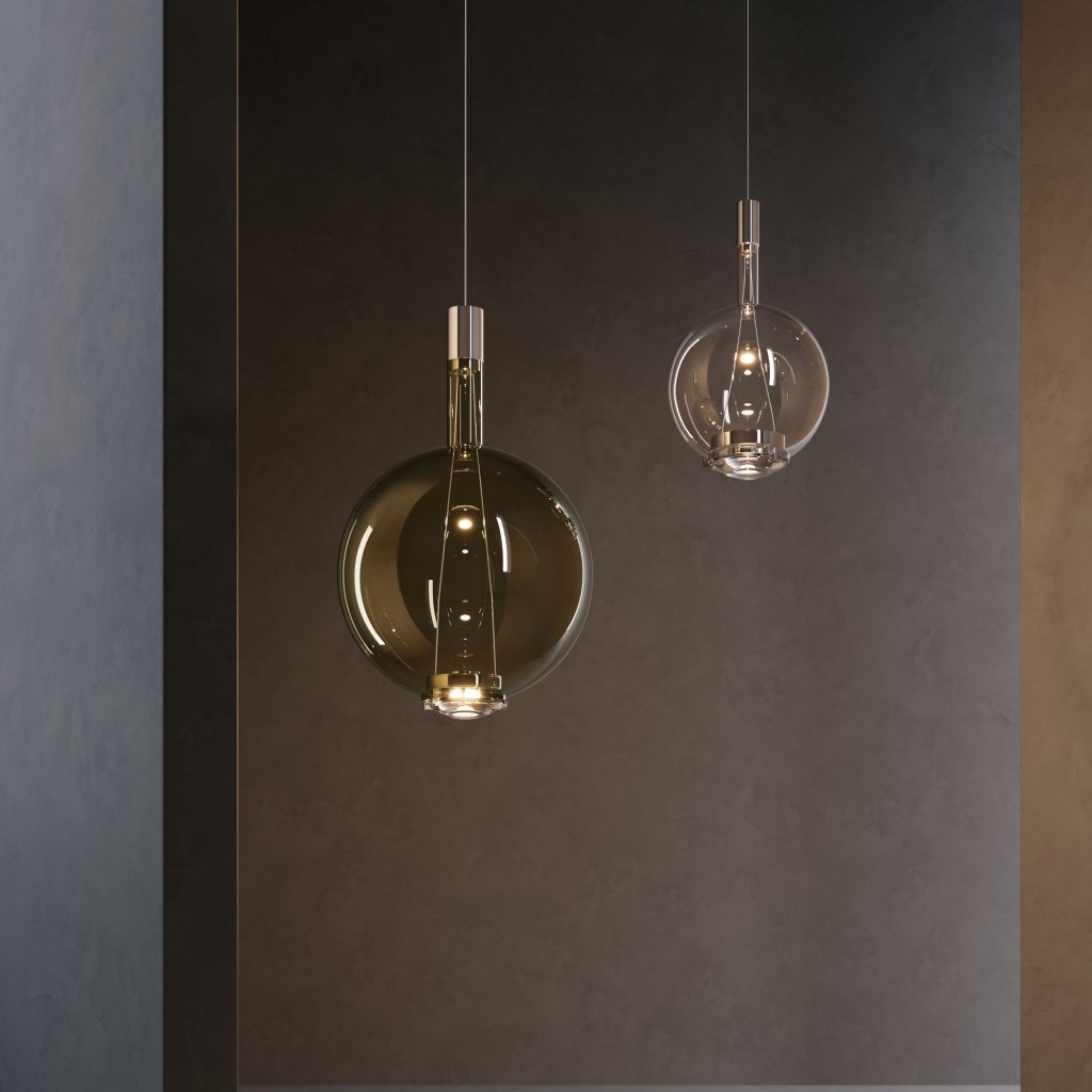Lodes Sky-Fall Round Large: závěsné svítidlo s netradičním designem, které spojuje ručně foukané sklo nejvyšší kvality s moderní LED technologií. Vyrábí italská rodinná firma Lodes.