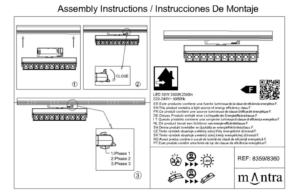 Mantra 3F Creta, lineární LED modul 30W 3000K, černá, délka 54cmDoplňkové parametry