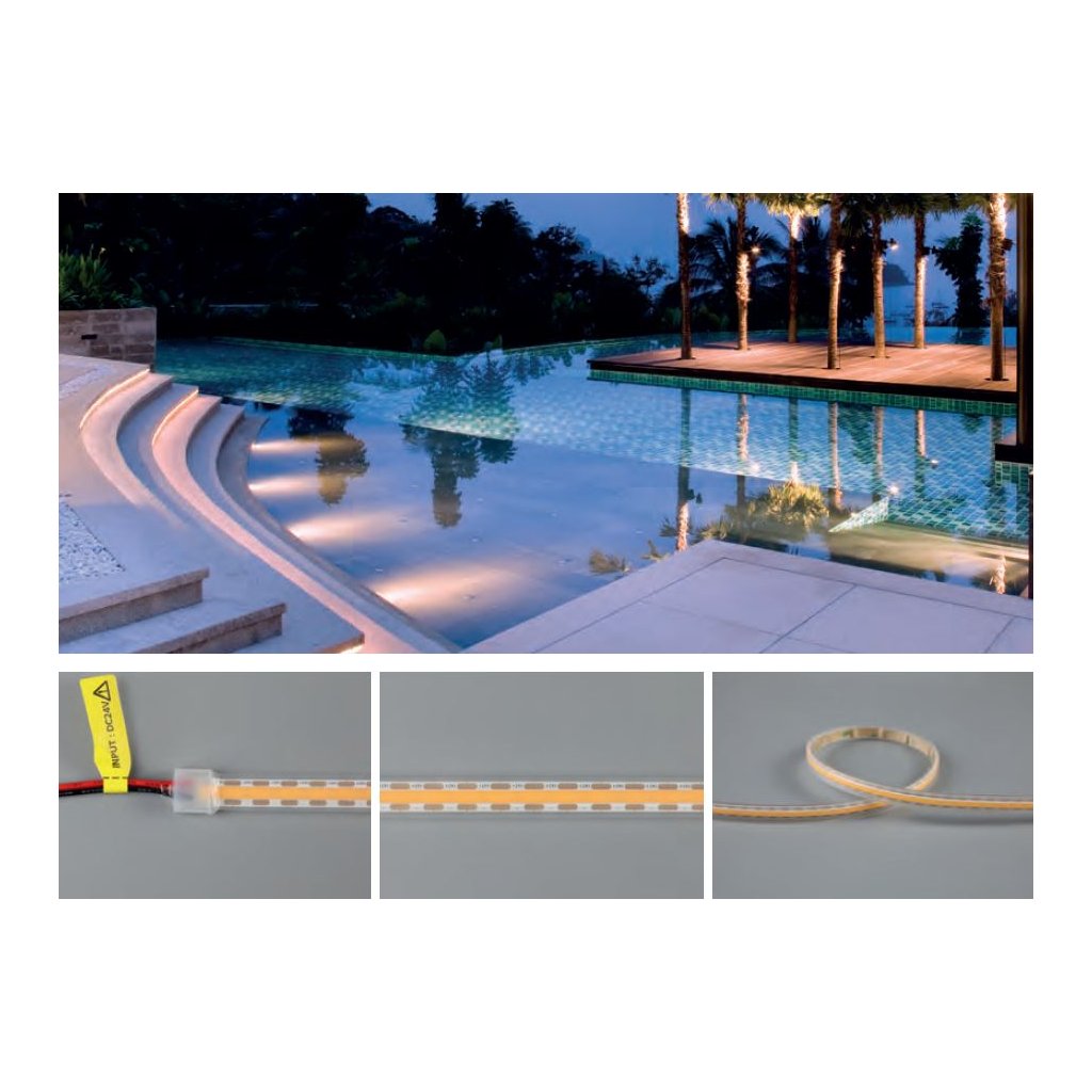 COB (Chip On Board) technologie zajišťuje souvislou světelnou linii bez viditelných bodů LED, vyšší světelnou účinnost, lepší chlazení a delší životnost. Díky rovnoměrnému svitu jsou ideální pro dekorativní i hlavní osvětlení v interiéru i exteriéru.