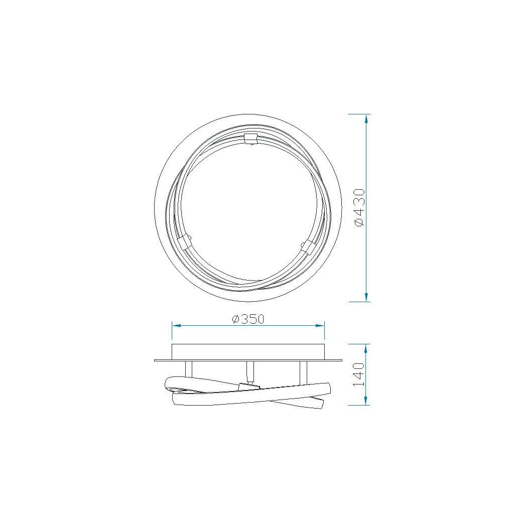 Vyrobeno z kovu v kombinaci chromu a stříbrné povrchové úpravy, difusor je z bílého plastu. Průměr: 43cm, výška 14cm.