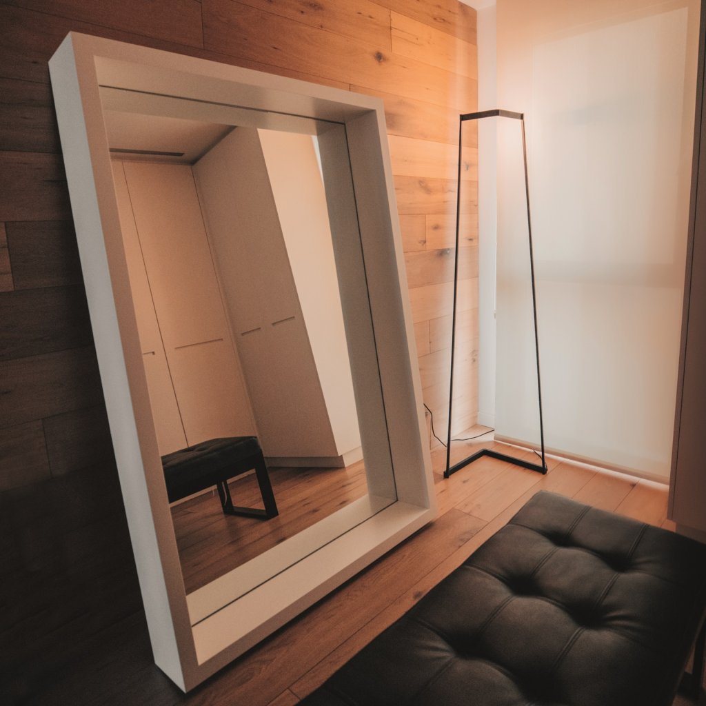 Kovová stojací lampa Mantra Minimal k dispozici v různých povrchových úpravách