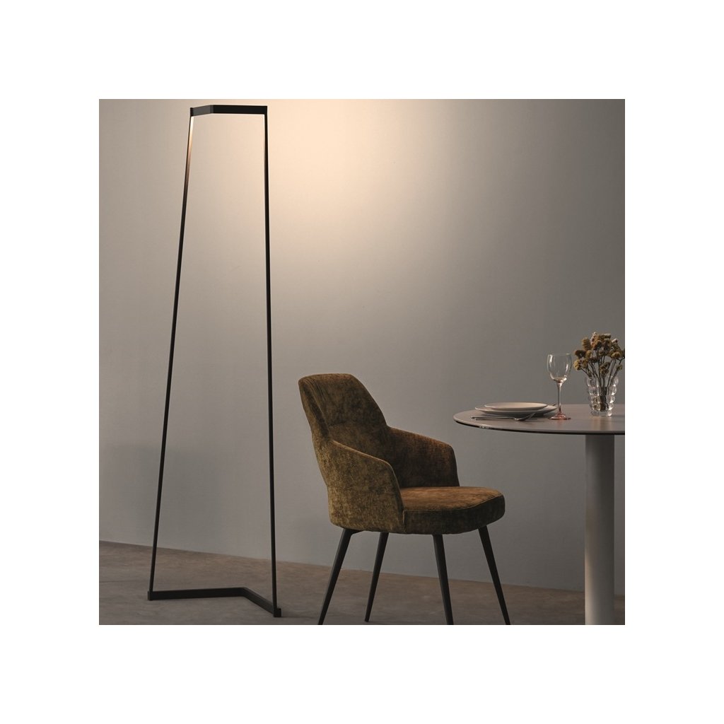Vysoká stojací lampa vyrobená z kovu s integrovanou LED v teplém tónu se stmívačem