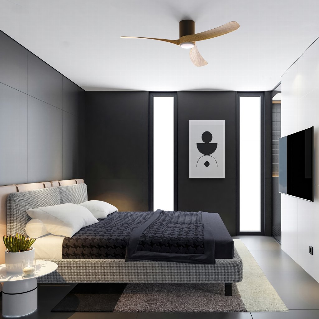 Mantra Nemo II L, lopatkový ventilátor se svítidlem a dálk. ovladačem, LED 19W 3000-5000K, černá/světlé dřevo, průměr 132cm