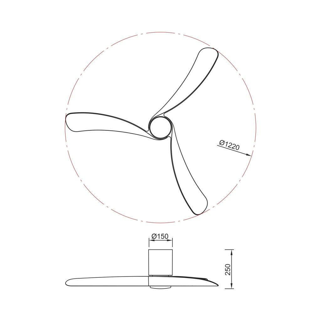 Výkon ventilátoru je 32W a je vhodný pro místnosti o rozloze 13-20m². Otáčky: 168ot/min. Hlučnost: 32-46dB. Proud vzduchu: 162m³/min. Ventilátor je vybaven i reverzním chodem a je ho možné používat jak v létě, tak v zimě.