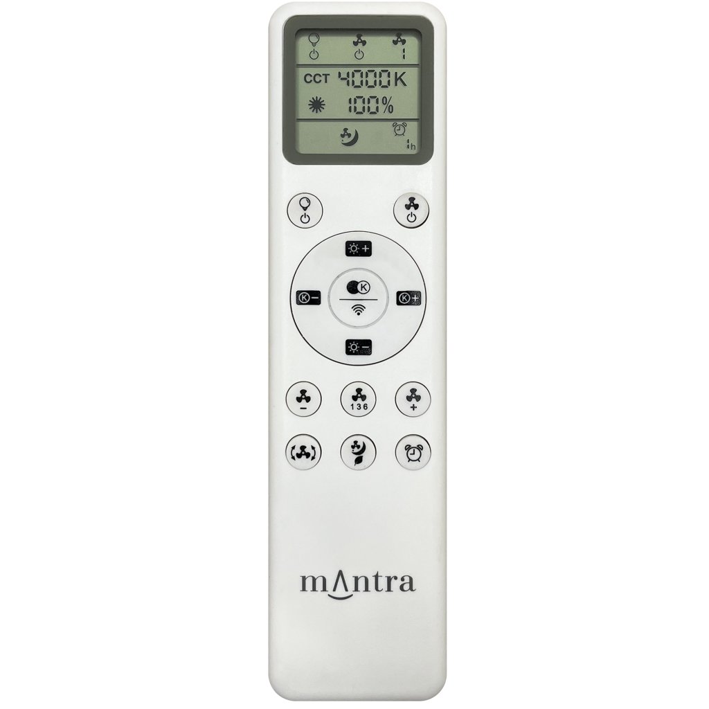 Integrovaný 15W LED modul se světelným tokem 2100lumenů je dostatečně výkonný i na vetší místnost. Svítidlo je ovládané dálkovým ovladačem RF R00143 s displejem a umožňuje stmívání, změnu teploty barvy světla od teple bílé 3000K až do denní bílé 5000K. Nastavení časovaše i nezávislé ovládání svícení a ventilátoru.