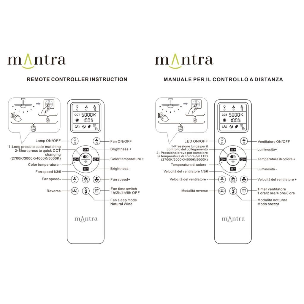 Integrovaný 15W LED modul se světelným tokem 2100lumenů je dostatečně výkonný i na vetší místnost. Svítidlo je ovládané dálkovým ovladačem RF R00143 s displejem a umožňuje stmívání, změnu teploty barvy světla od teple bílé 3000K až do denní bílé 5000K. Nastavení časovaše i nezávislé ovládání svícení a ventilátoru.
