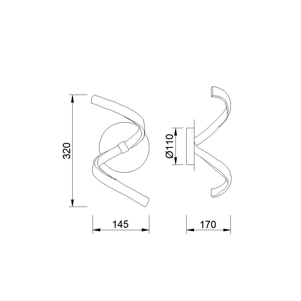 Moderní nástěnné svítidlo z krouceného kovu. Člen rodiny Nur od španělského výrobce Mantra. Autoři designu: José Ignacio Ballester a Santiago Sevillano z roku 2015. Osazeno nejmodernější LED technologií s vysokým výkonem a nejnižší spotřebou.