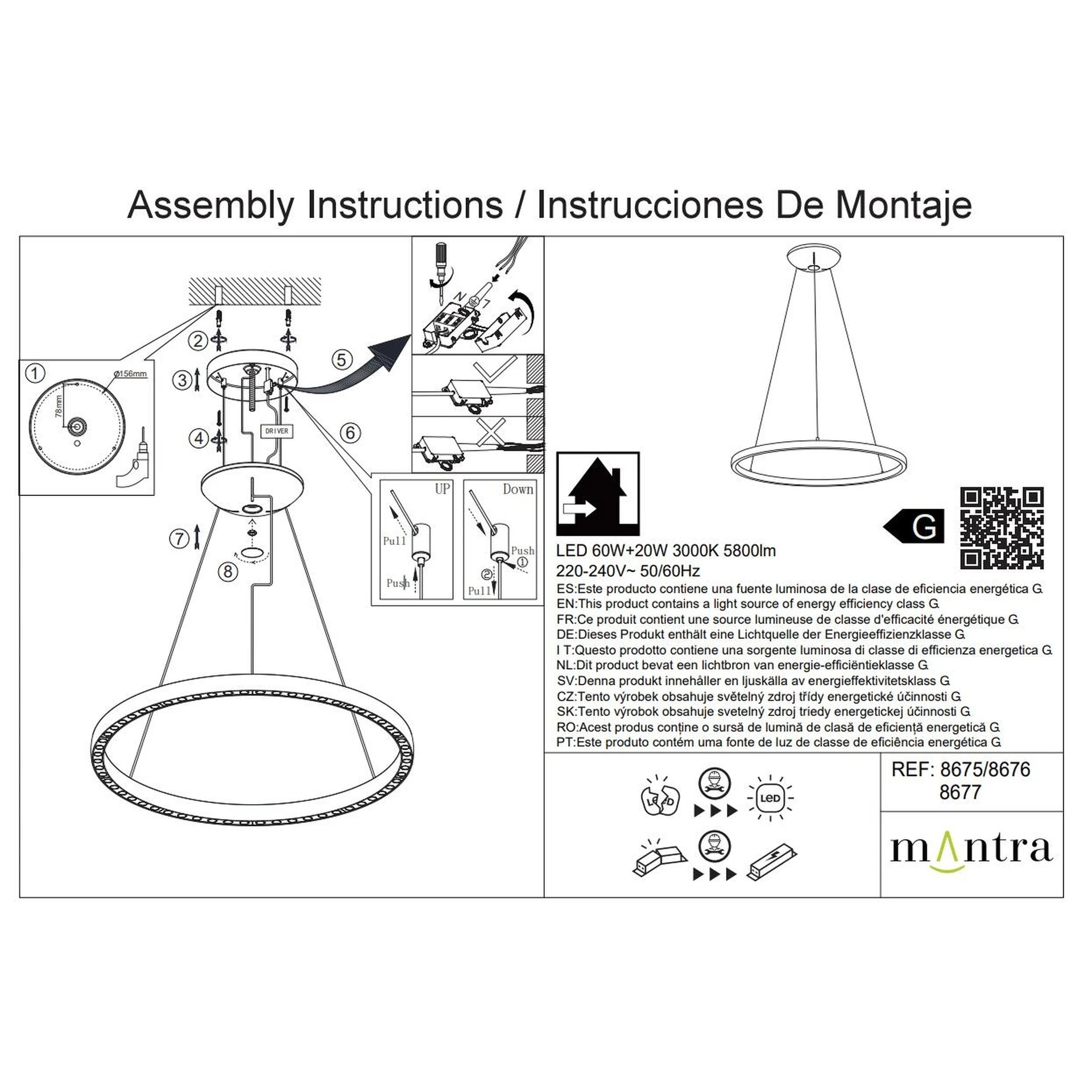Mantra Riumar, černé kruhové svítidlo 40+15W 3000K, se svícením nahoru/dolů, pr. 62,8cmDoplňkové parametry