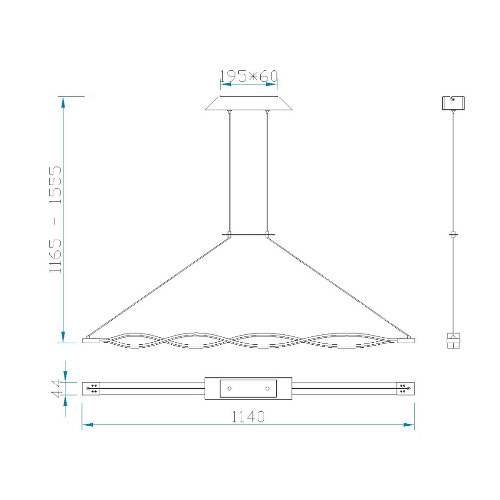Závěsné svítidlo Mantra 4860 má délku 114cm, šířka: 4,5cm. Nastavitelná výška závěsu od 116 - 155cm. Osazeno 2x18W LED se světelným tokem 2520lm, teple bílá barva světla 3000K. Vyrobeno z kovu v kombinaci stříbrné a pochromované úpravě. Difusor je z bílého akrylátu.