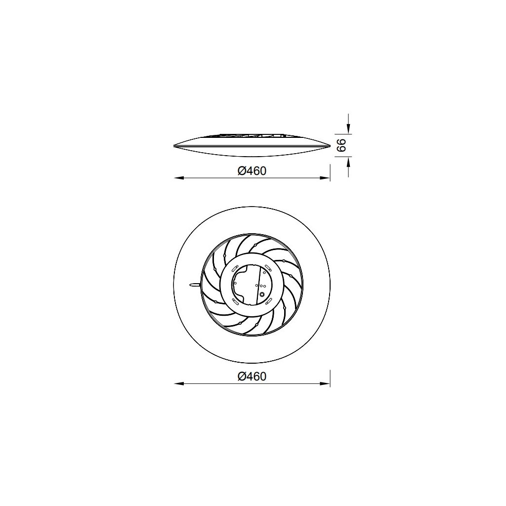 Jeho rozměry jsou: Ø46x7,5 cm. Má výkon 50W, intenzitu svícení 4300lm, životnost 30 000 hodin a 5letou záruku.