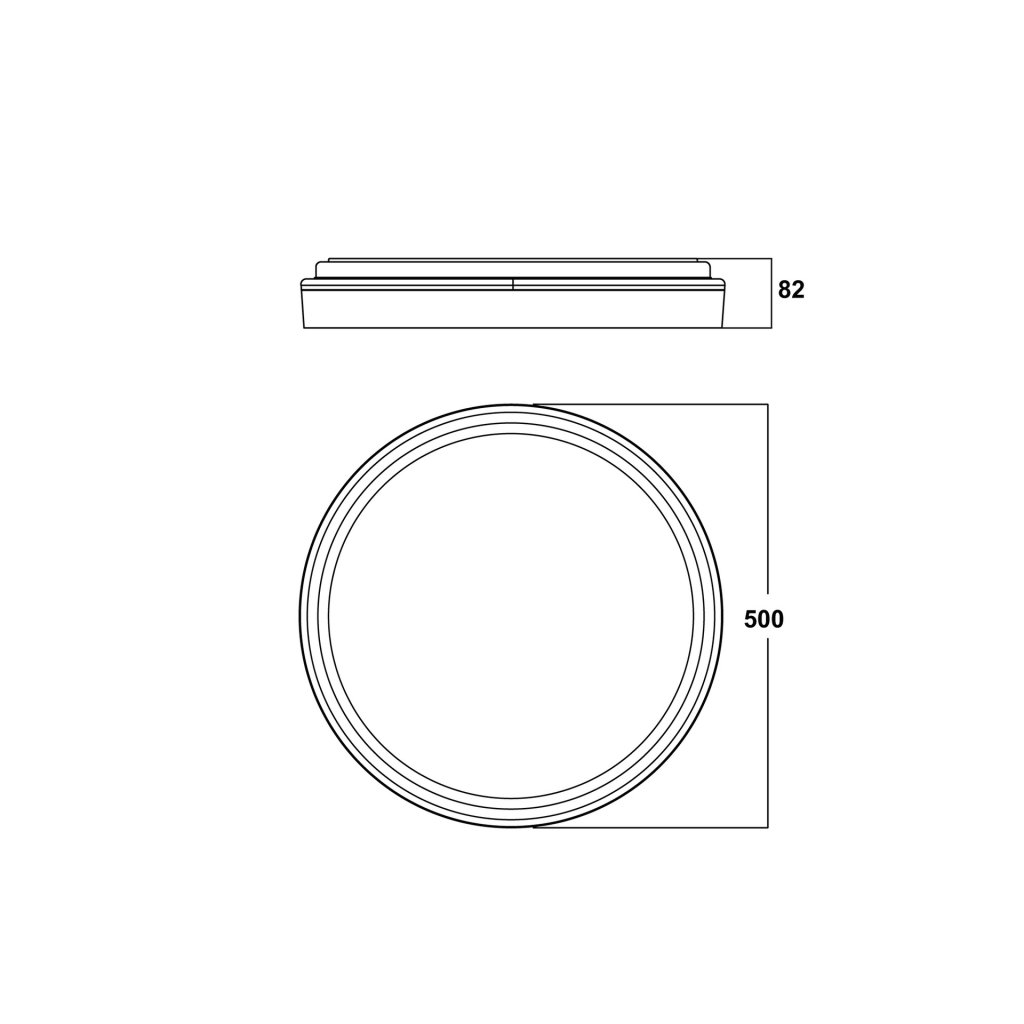 Jeho rozměry jsou: Ø50 x 8,2 cm. Má výkon 55W, intenzitu 8650lm, teplota světla měnitelná v rozmezí 3000-5000K, životnost 30 000 hodin a 5letou záruku.