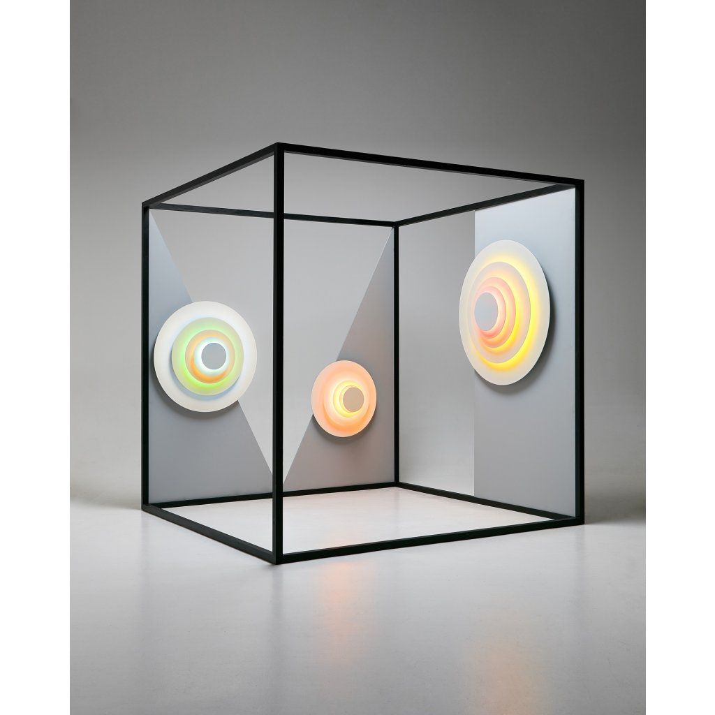 Díky svému čistému a symetrickému tvaru připomíná záři slunce. Za denního světla jsou barvy svítidla jemně vnímány, ale v noci vystupují do popředí a svojí září vyvolávají zajímavé barevné efekty.