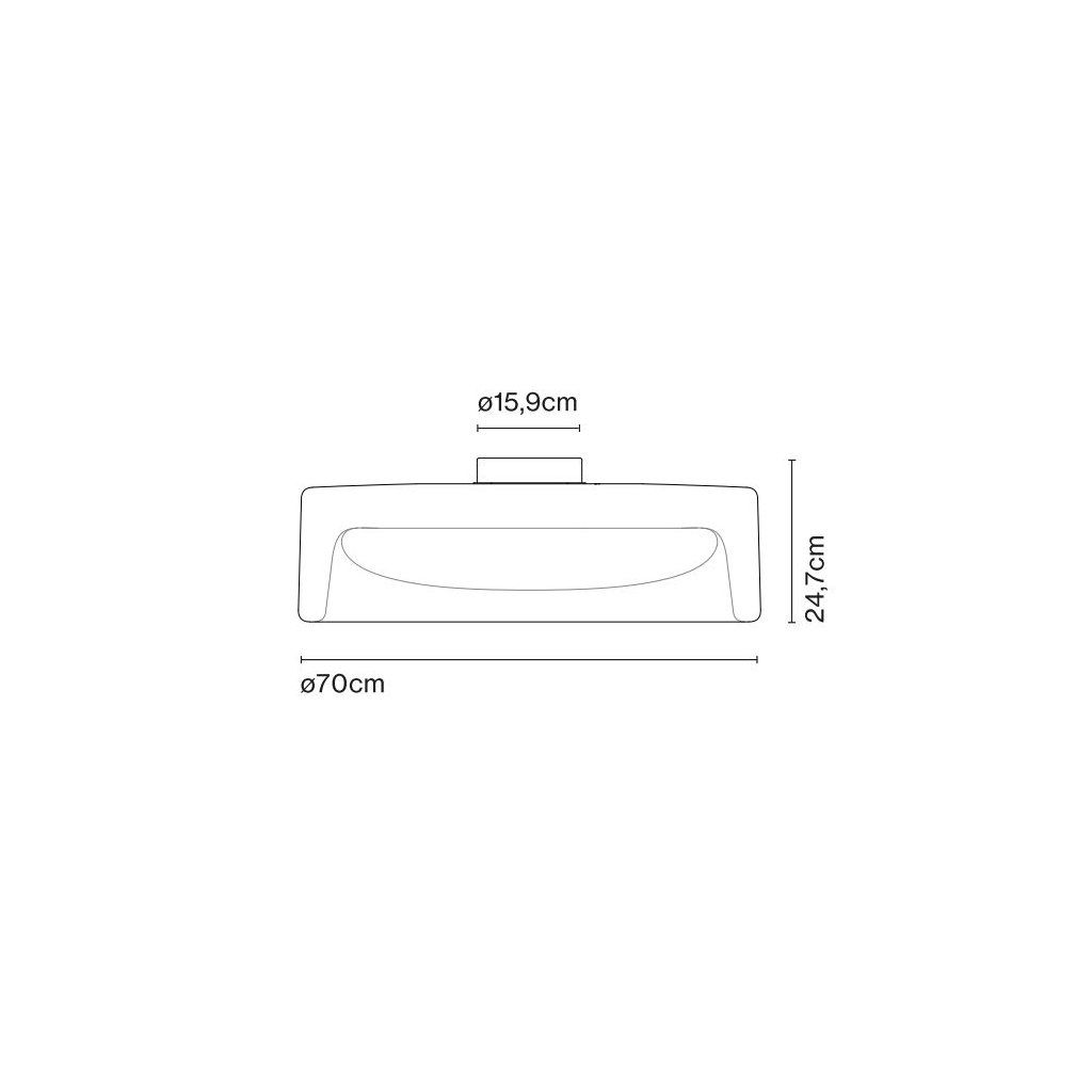 K dispozici ve stropní verzi a závěsné verzi, ve dvou velikostech, 70 a 90 cm, a ve čtyřech povrchových úpravách: zelená, růžová, kouřová a tmavě kouřová.