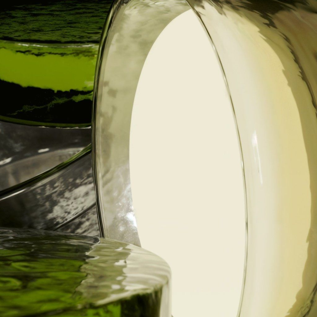 K dispozici ve stropní verzi a závěsné verzi, ve dvou velikostech, 70 a 90 cm, a ve čtyřech povrchových úpravách: zelená, růžová, kouřová a tmavě kouřová.