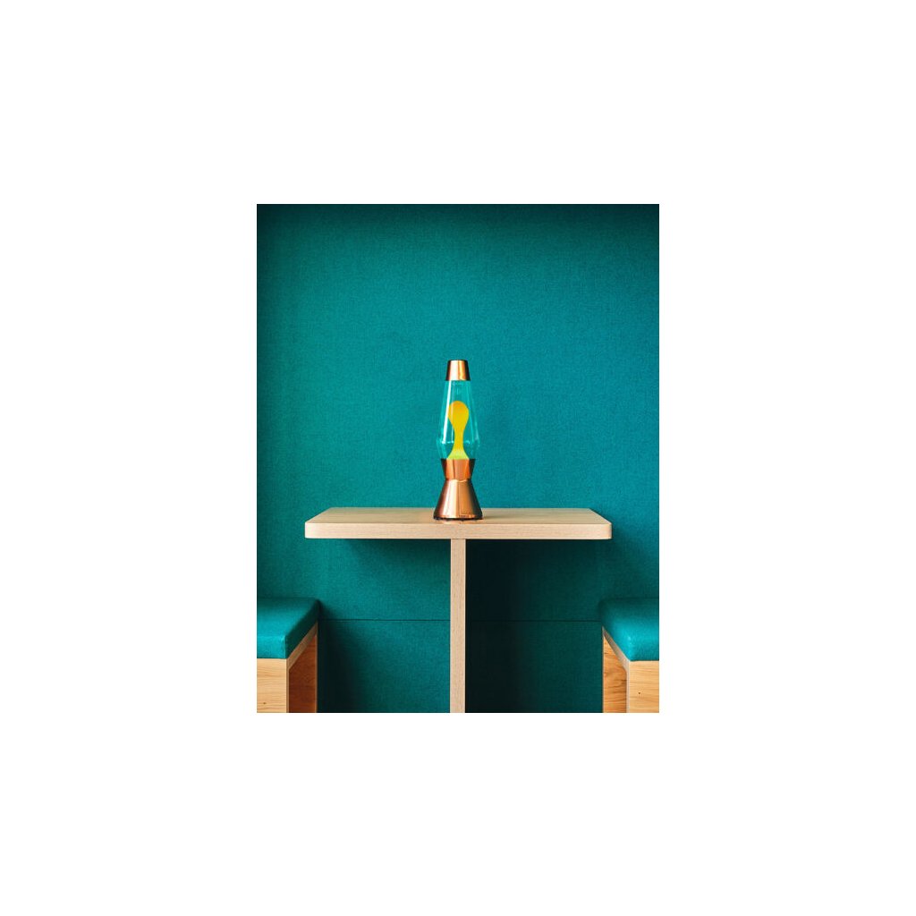 Mathmos Astro Copper: klasický tvar lávové lampy Astro oživený nadčasovou měděnou úpravou podstavce a vršku.