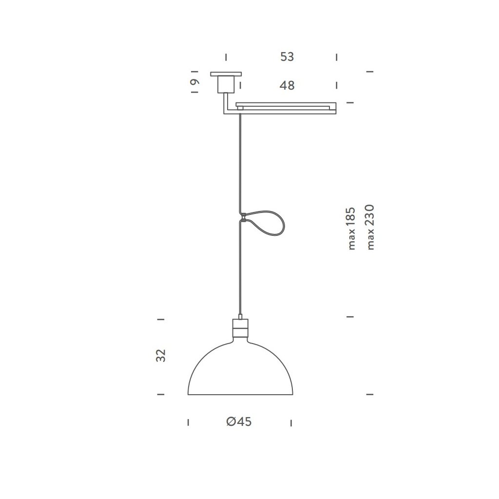 Průměr 40cm, výška svítidla 32cm. Prakticky nastavitelné rameno 53+48cm. Délka závěsného kabelu je 250cm s možností zkrácení sponou.