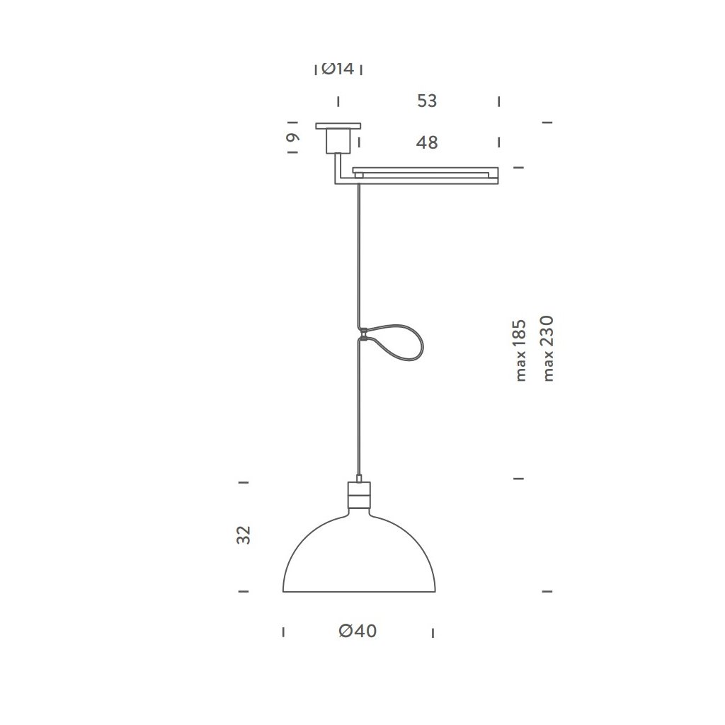 Průměr 40cm, výška svítidla 32cm. Prakticky nastavitelné rameno 53+48cm. Délka závěsného kabelu je 250cm s možností zkrácení sponou. Hmostnost 6 kg.