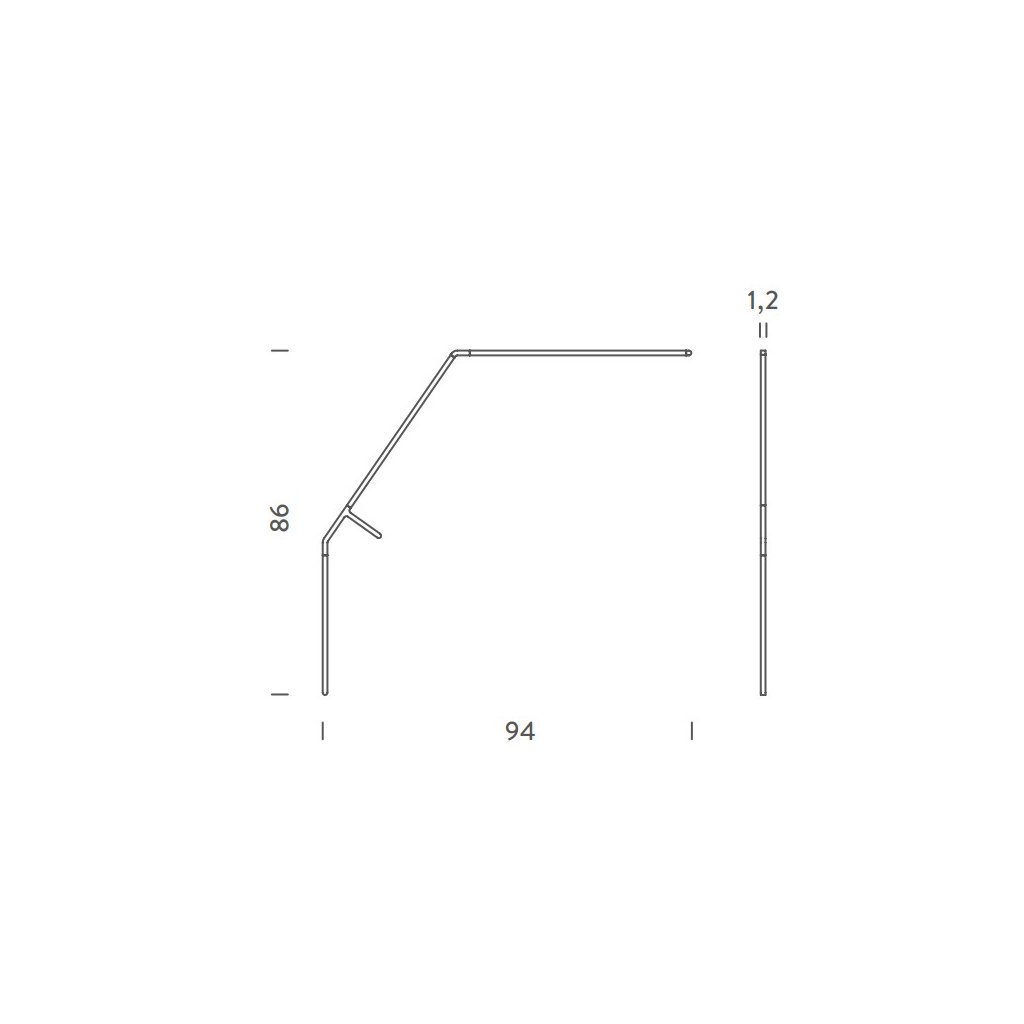 Výška 86cm, hloubka 94cm. Rameno je nastavitelné v úhlu 3 stupně.
