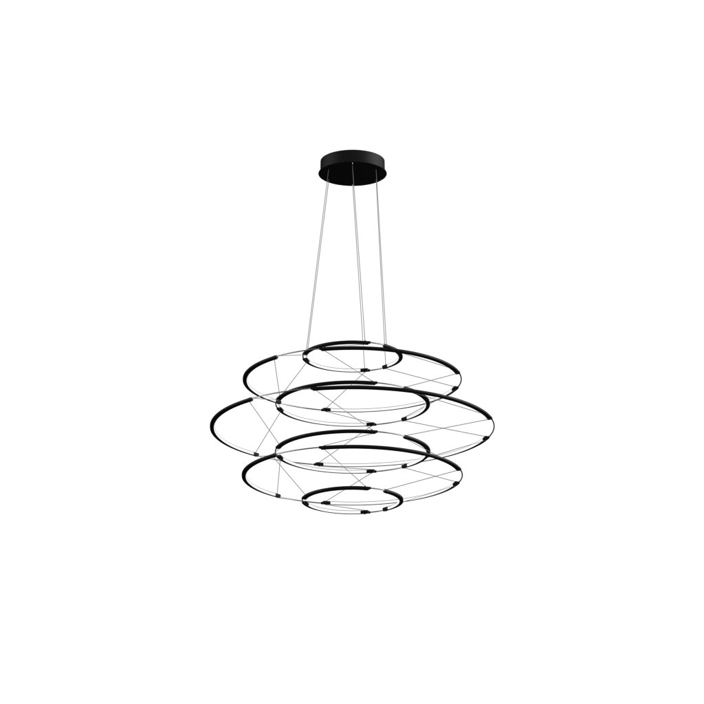 Kruhy, které tvoří konstrukci jsou vyrobeny z černého hliníku, který přechází do difusoru, pod kterým je světelný zdroj.