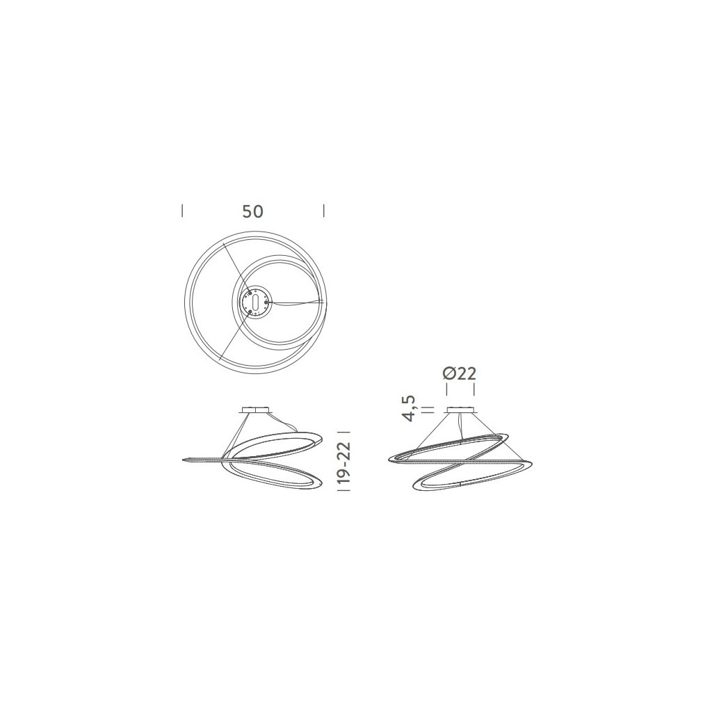 Průměr 50cm, výška svítidla 19-21cm. Nastavitelná délka závěsu od 250 do 40cm.