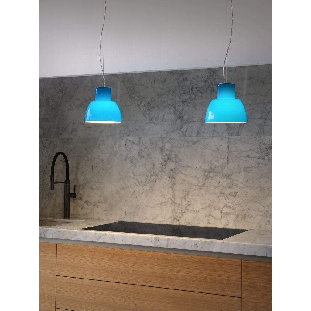 Nemo Lorosae, modré závěsné svítidlo se stínidlem ze skla, 1x60W E27, prům. 40cm