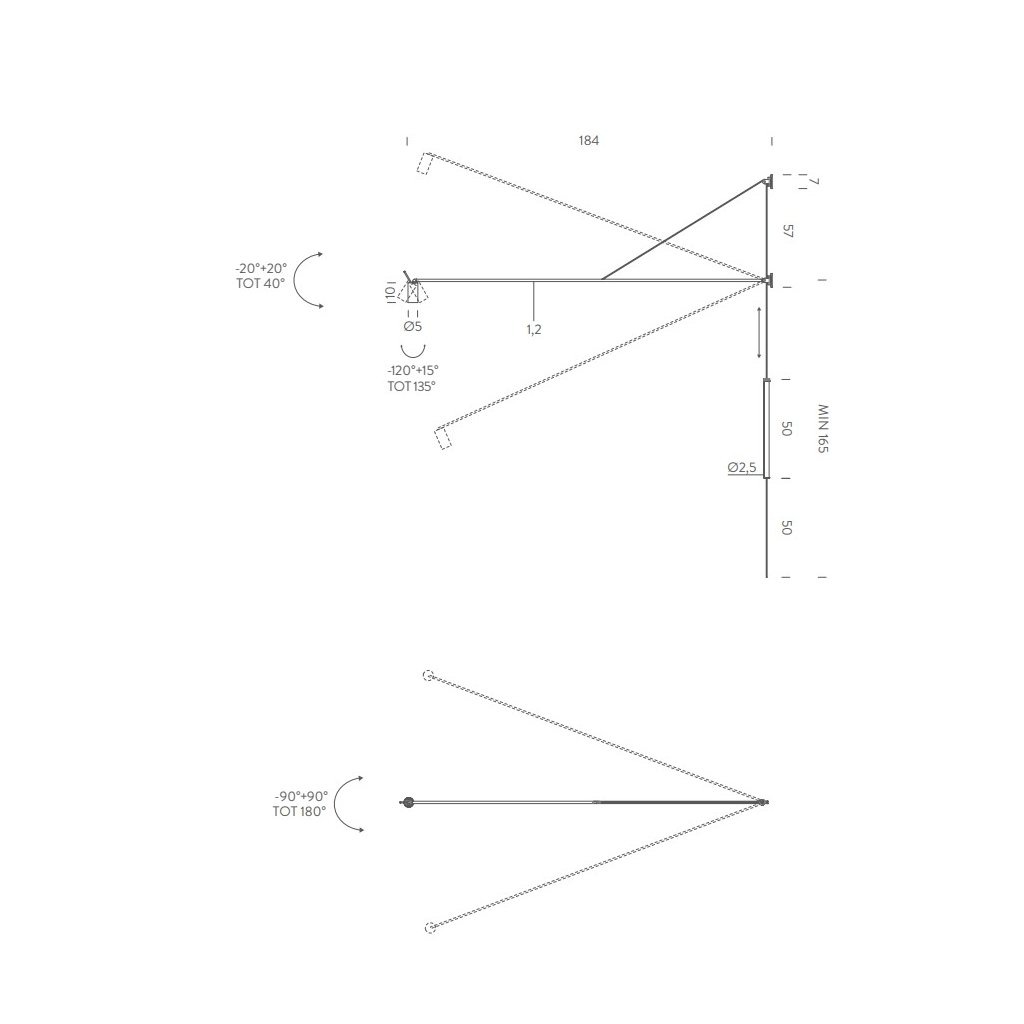 Délka ramene 183cm, výška 57cm. Reflektor i rameno je nastavitelné vertikálně i horizontálně.