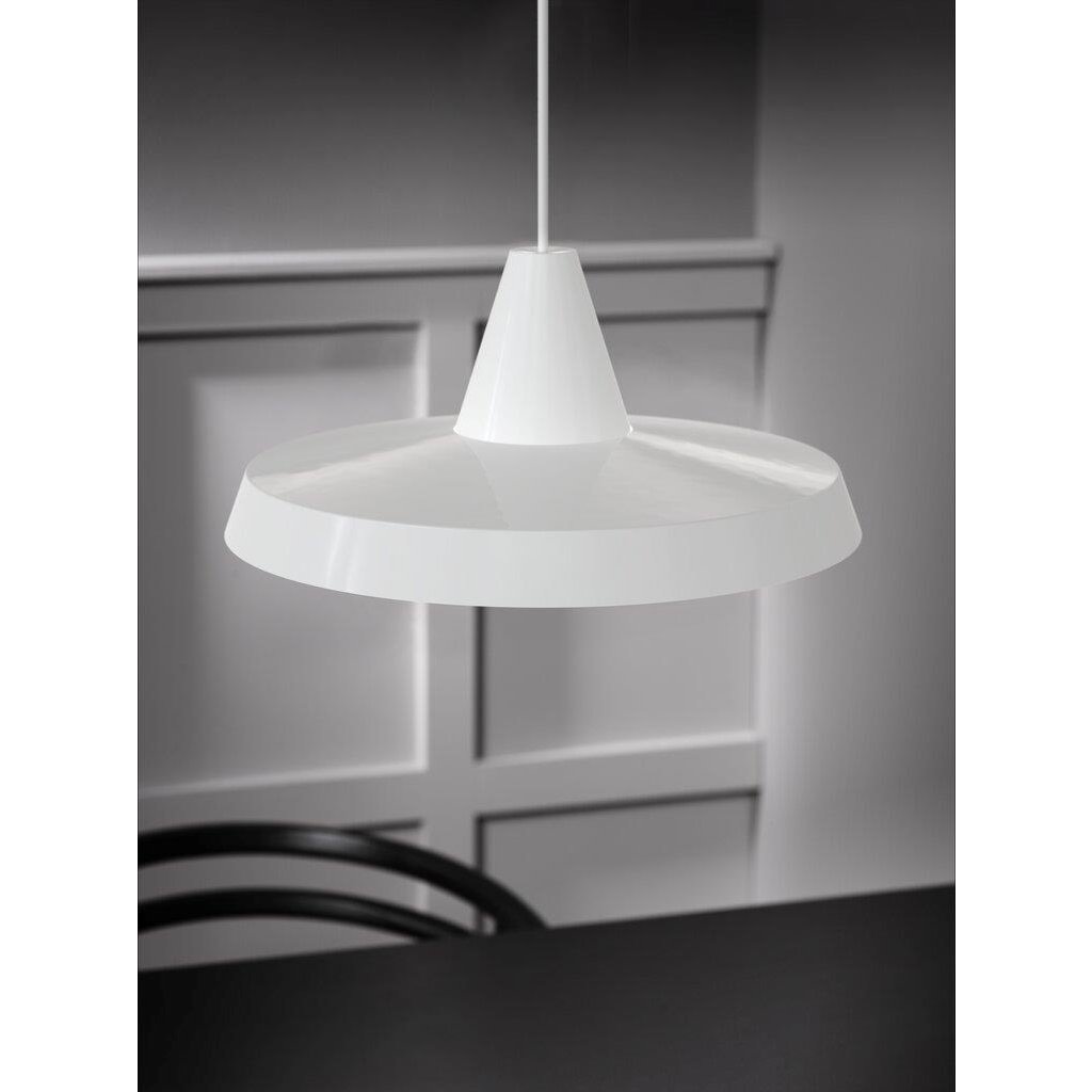 Bílé, závěsné svítidlo od dánského výrobce Nordlux, řada Anniversary z kovu v bílé povrchové úpravě. Pro osvětelní nad jídelní stůl, nad bar, do restaurace, baru i do obytného domu.
